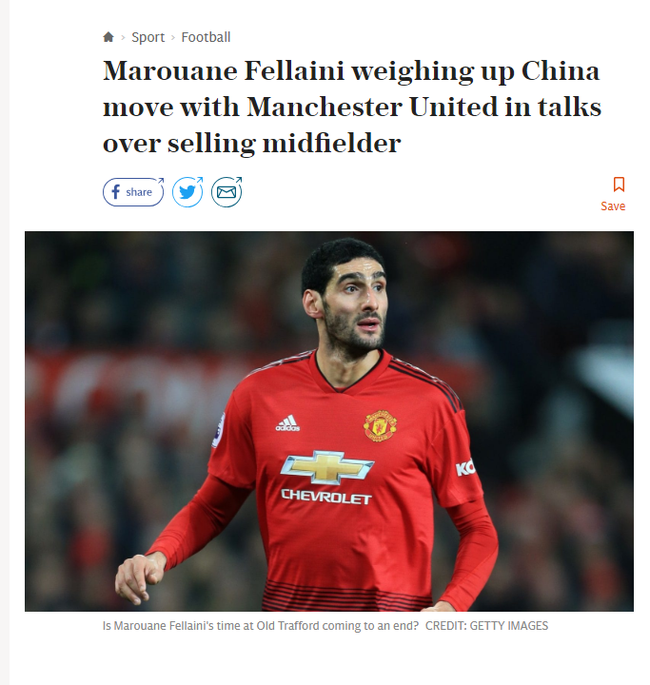 《每日电讯报》在报道中称曼联现在正在就费莱尼转会一事与中国山东鲁能俱乐部进行洽谈,中国联赛的转会窗口在2月28日才正式关闭,但是英国的转会窗将于本周四关闭,所以时间给这桩转会形成了不小的压力。