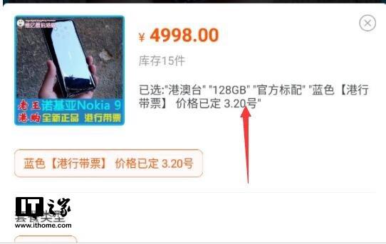 目前有网友在淘宝发现有商家已经上架了港版诺基亚9 PureView手机,同时该商家表示港版诺基亚9 PureView手机的发售或者发布时间将会定在3月20日,同时价格为4998元人民币。当然和发布时间相比,价格会随着时间不断波动。