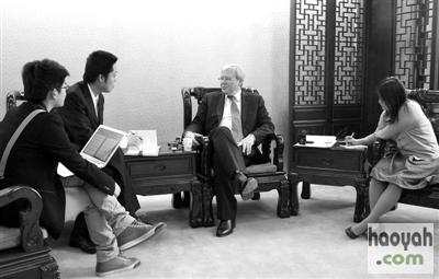 5月2日,北京,陆克文在对外经贸大学接受三家媒体的采访。《中国日报》提供