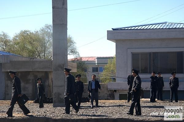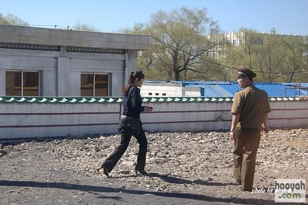 11.抱膀的海关男女工作人员。海关属于涉外行业,在朝鲜非常吃香。