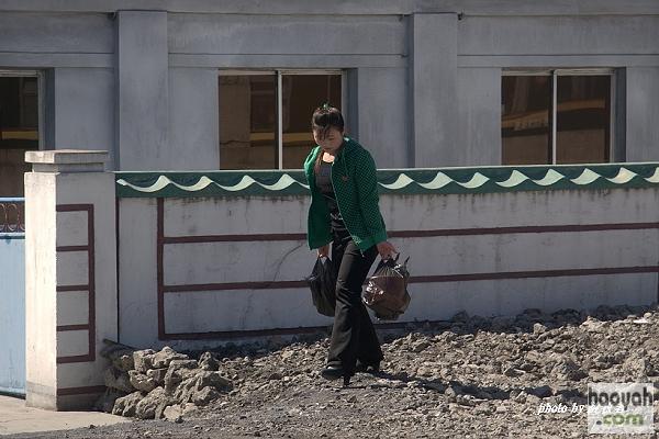 4.穿着这么高的高跟鞋走在这样的路面上,真替这些朝鲜美女捏一把汗。不知道她们是做什么工作的。