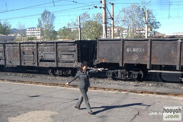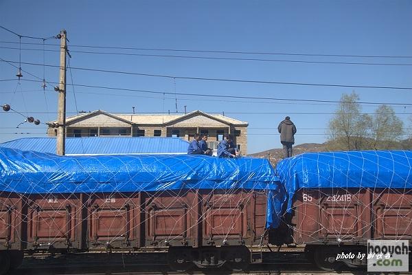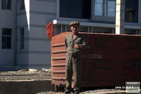 列车从丹东火车站出发后,跨过著名的鸭绿江大桥,行驶十几分钟后就到达了朝鲜边境城市新义州火车站,接下来就是几个小时漫长的等待。在别的国家只需一个多小时就可以完成的通关程序,在这里却要花上四五个小时,游客们在这里可以亲身体验一下朝鲜的千里马速度。只见大盖帽们轮番上阵,先是海关再是边防。刚送走一伙灰色大盖帽,然后又迎来一伙黄色大盖帽。游客们不允许下车,只能老老实实地待在火车上接受大盖帽的盘问检查,甚至勒索。这种遭遇对于大多数人来说都是一种折磨,然而对于我老说,既来之则安之,正好可以利用这个机会来体察一下新义州朝鲜人的生活原貌,火车玻璃窗可以成为隔离朝鲜人和外国游客的屏障,也可以变成观察朝鲜人生活和工作的窗口,在火车上刚认识的两位大哥义务地当起了我的哨兵,他们坐在通道上的凳子上,一发现有朝鲜人过来,马上在第一时间通知我,于是我就可以从容地藏好相机,躲开朝鲜人的检查。
