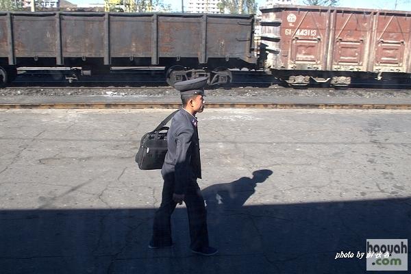 5.新义州火车站:窗外走过很多荷枪实弹的军人,这是朝鲜人民军的军官。始终搞不清楚为什么和平时期朝鲜人在火车站派那么多武装军人站岗做什么,难道是防止美国特务炸火车站?