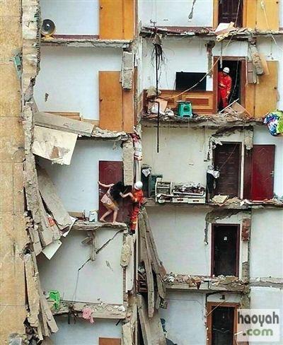 客厅垮塌后仅剩下10厘米左右墙体,何初琴手扒着客厅的门没掉下去,她头部受到了轻伤,她弟弟未受伤。 据央视