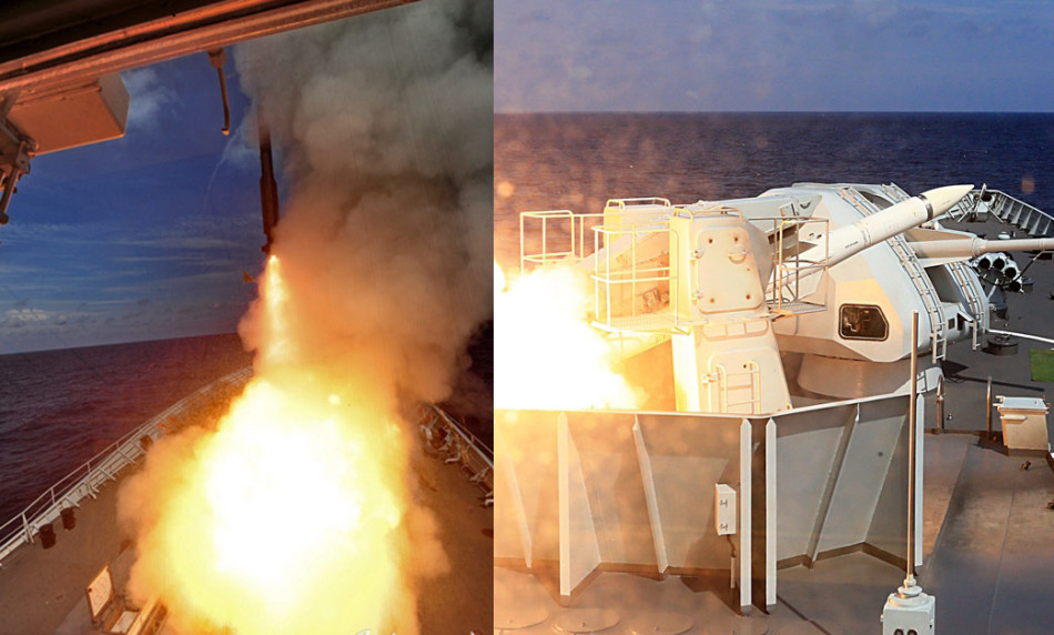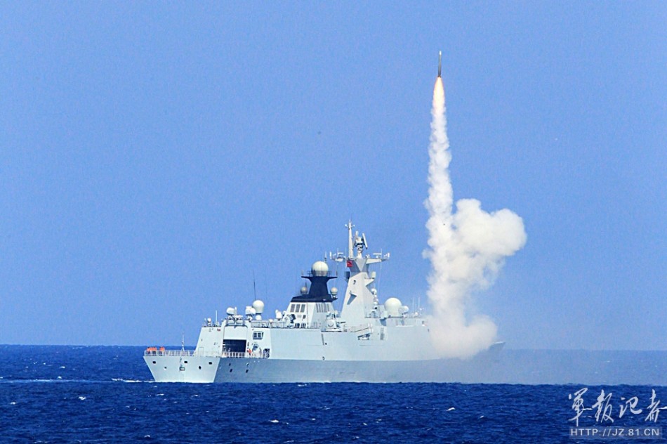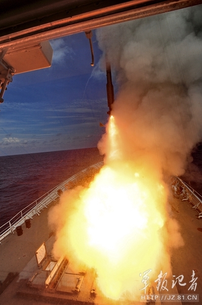 海军在南海实兵对抗 054A与052B舰发射两型导弹