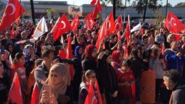 昨天,近千名澳籍土耳其人聚集在墨尔本,以示对土耳其总统雷杰普·塔伊普·埃尔多安表示支持。15日在土耳其爆发了军事政变,但很快就被镇压下去了。