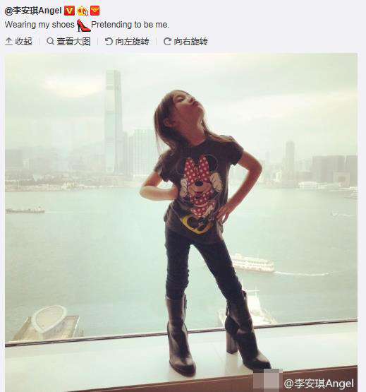 腾讯娱乐讯 2月12日晚,李小鹏的妻子李安琪在微博晒出一张女儿奥莉的近照,穿上妈妈的高跟鞋后,奥莉昂首叉腰站在窗台上。
