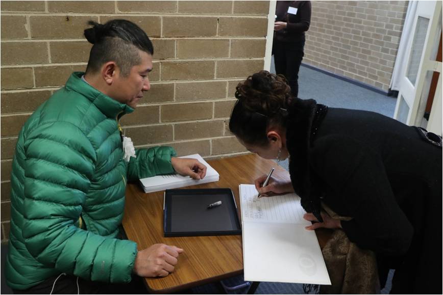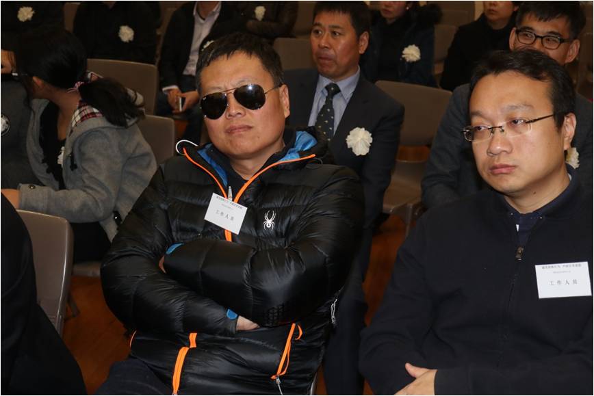 大厅里,会场布置也开始了,青年老年不讲年龄不论体质强弱共同努力,齐心协力一起上阵。在中文图书馆做义工的高小明先生,从东北来的二人转夫妻搭档曲恩浩先生和付玉霞女士,小伙子陈子豪,白马华人协会的盛达青副会长等兵分两路很快就把大会标题给贴上了墙,位置间距恰到好处,为郝凯父母亲友的到来送上了他们的诚挚欢迎。