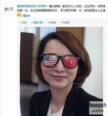 董卿留学自拍曝光 戴中美国旗眼镜一脸笑容