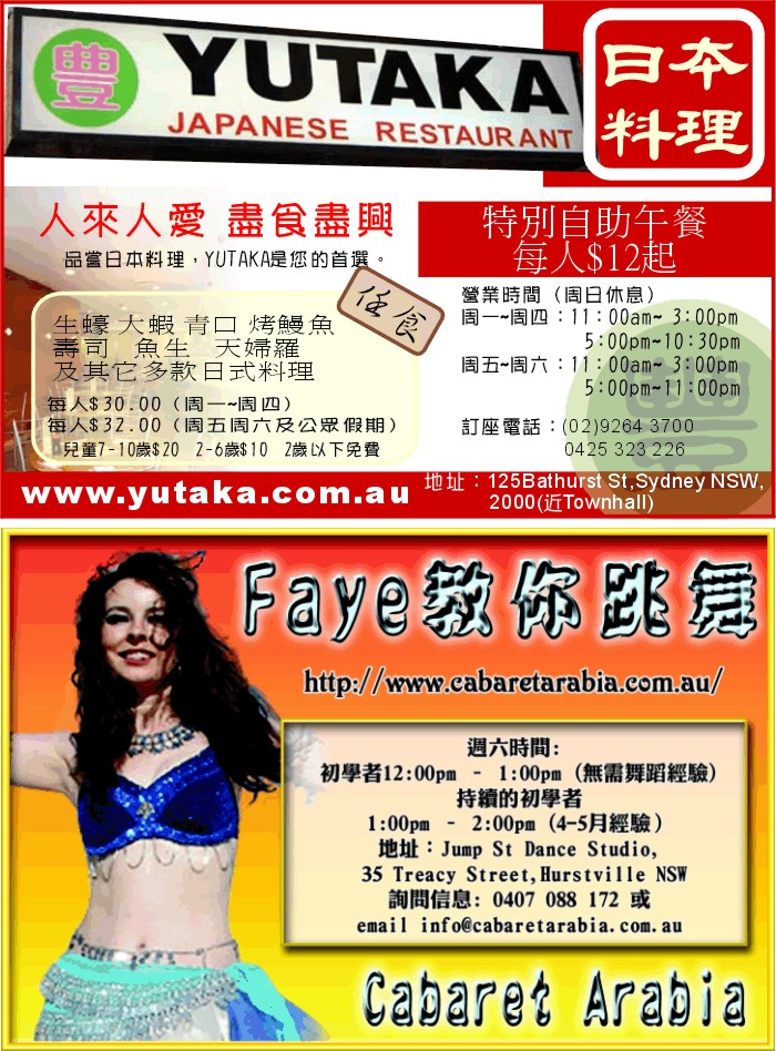 商业目录 YuTaKa Japanese Restaurant 英文名称: YuTaKa Japanese Restaurant业务分类: 餐饮娱乐详细介绍: 詳情請見廣告网站地址: http://www.yutaka.com.au联系电话: 02 9264 3700商务地址: 125 Bathurst St., Sydney, NSW Australia 2000 发送消息给业主 商家名称:YuTaKa Japanese Restaurant 您的姓名 您的邮件 消息内容