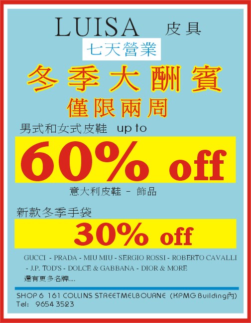 商业目录 LUISA Boutique 英文名称: LUISA Boutique业务分类: 购物中心详细介绍: 詳情請見廣告联系电话: 96543523商务地址: Shop 6, 161 Collins St, Melbourne, VIC Australia 3000 发送消息给业主 商家名称:LUISA Boutique 您的姓名 您的邮件 消息内容