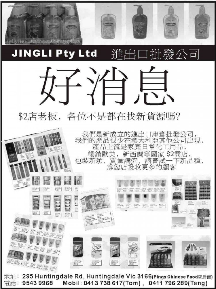 商业目录 JINGLI Pty Ltd 英文名称: JINGLI Pty Ltd业务分类: 购物中心详细介绍: 詳情請見廣告联系电话: 95439968/0413738617/0411796289商务地址: 295 Huntingdale Rd, Huntingdale, VIC Australia 3166 发送消息给业主 商家名称:JINGLI Pty Ltd 您的姓名 您的邮件 消息内容