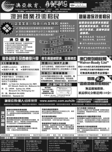 商业目录 AAEMC 英文名称: AAEMC中文名称: 澳亞教育移民中心业务分类: 中级教育详细介绍: 詳情請見廣告网站地址: http://www.aaemc.com.au联系电话: 96702118商务地址: level 7, 388 Lonsdale St., Melbourne, VIC Australia 3000 发送消息给业主 商家名称:AAEMC 您的姓名 您的邮件 消息内容