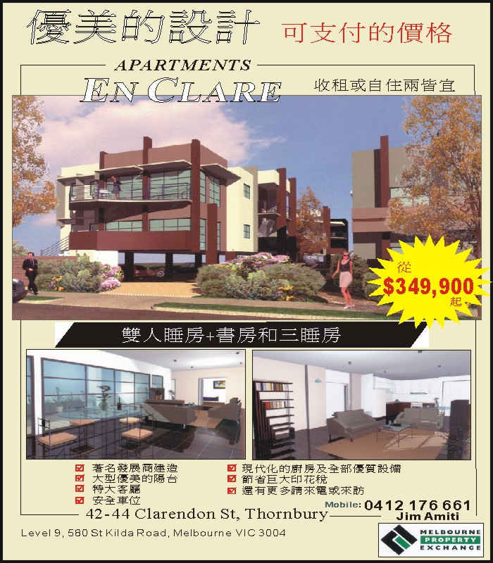 商业目录 Melbourne Property Exchange 英文名称: Melbourne Property Exchange业务分类: 房屋地产详细介绍: 詳情請見廣告联系电话: 95337080商务传真: 95337083商务地址: Level 9, 580 St. Kilda Rd, Melbourne, VIC Australia 3004 发送消息给业主 商家名称:Melbourne Property Exchange 您的姓名 您的邮件 消息内容