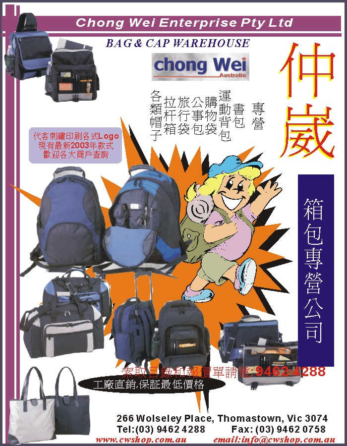 商业目录 Chong Wei Enterprise Pty Ltd 英文名称: Chong Wei Enterprise Pty Ltd中文名称: 仲崴业务分类: 购物中心详细介绍: 詳情請見廣告网站地址: http://www.cwshop.com.au联系电话: (03)9462 4288商务传真: (03)9462 0758商务地址: 266 Wolseley Palace, Thomastown, VIC Australia 3074 发送消息给业主 商家名称:Chong Wei Enterprise Pty Ltd 您的姓名 您的邮件 消息内容