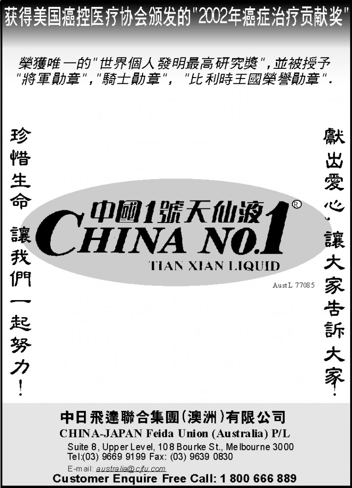 商业目录 Tian Xian Liquid 英文名称: Tian Xian Liquid中文名称: 中國1號天仙液业务分类: 医疗保健详细介绍: 詳情請見廣告联系电话: (03)9669 9199, 1800 666 889商务传真: (03)9639 0830商务地址: Suite 8, Upper Level, 108 Bourke St, Melbourne, VIC Australia 3000 发送消息给业主 商家名称:Tian Xian Liquid 您的姓名 您的邮件 消息内容