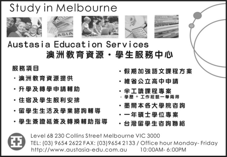 商业目录 Austasia Education 综合服务 英文名称: Austasia Education 综合服务业务分类: 中级教育详细介绍: 詳情請見廣告网站地址: http://www.austasia-edu.com.au联系电话: 9654 2622商务传真: 9654 2133商务地址: level 6B 230 Collins Street, Melbourne, VIC Australia 3000 发送消息给业主 商家名称:Austasia Education 综合服务 您的姓名 您的邮件 消息内容