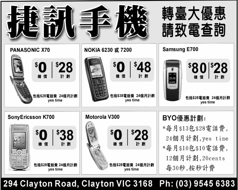 商业目录 JV Mobile Specialists Clayton 英文名称: JV Mobile Specialists Clayton中文名称: 捷訊手機业务分类: 电脑通讯详细介绍: 詳情請見廣告联系电话: 9545 6383商务地址: 294 Clayton Road,, Clayton, VIC Australia 3168 发送消息给业主 商家名称:JV Mobile Specialists Clayton 您的姓名 您的邮件 消息内容