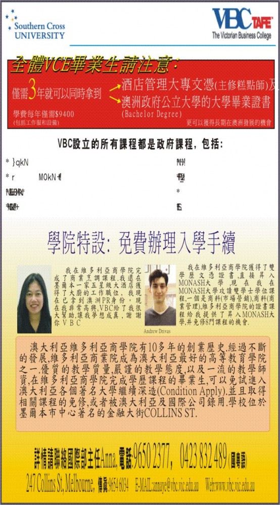 商业目录 The Victorian Business College 英文名称: The Victorian Business College中文名称: 維多利亞商學院业务分类: 中级教育详细介绍: 詳情請見廣告网站地址: http://www.vbc.vic.edu.au联系电话: 9650 2377商务地址: 247 Collins St, Melbourne, VIC Australia 3000 发送消息给业主 商家名称:The Victorian Business College 您的姓名 您的邮件 消息内容