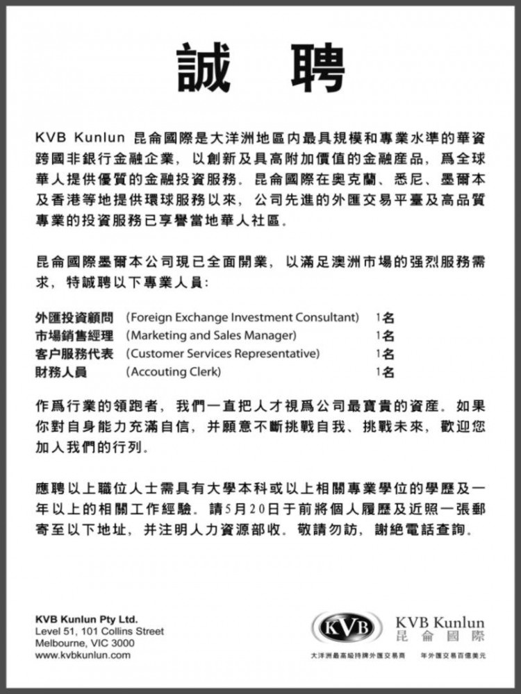 商业目录 kvbemp 英文名称: kvbemp中文名称: 昆侖誠聘业务分类: 综合服务详细介绍: 詳情請見廣告商务地址: Level 51,101 Collins Street, Melbourne, VIC Australia 3000 发送消息给业主 商家名称:kvbemp 您的姓名 您的邮件 消息内容