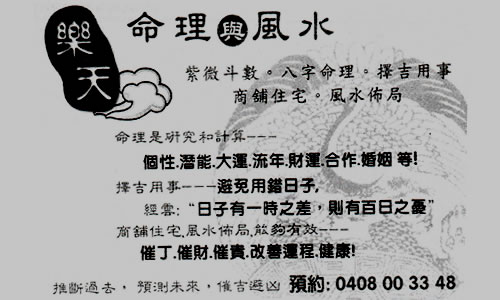 商业目录 HappyLife 英文名称: HappyLife中文名称: 樂天业务分类: 风水命理详细介绍: 詳情請見廣告联系电话: 0408003348商务地址: VIC Australia 发送消息给业主 商家名称:HappyLife 您的姓名 您的邮件 消息内容