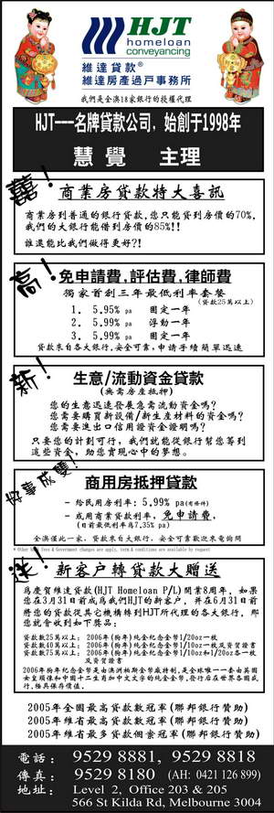 商业目录 HJT 英文名称: HJT中文名称: 維達貸款业务分类: 金融保险详细介绍: 詳情請見廣告联系电话: 95298881 , 95298818商务传真: 9529 8180商务地址: 566 St Kilda ,Level 2,Office 203&205, Melbourne, VIC Australia 3004 发送消息给业主 商家名称:HJT 您的姓名 您的邮件 消息内容