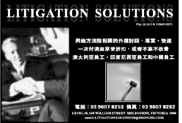 商业目录 Litigation Solutions 英文名称: Litigation Solutions业务分类: 法律移民详细介绍: 詳情請見廣告联系电话: 9607 8253商务传真: 9607 8283商务地址: Level 40?A 140 William Street, Melbourne, VIC Australia 3000 发送消息给业主 商家名称:Litigation Solutions 您的姓名 您的邮件 消息内容